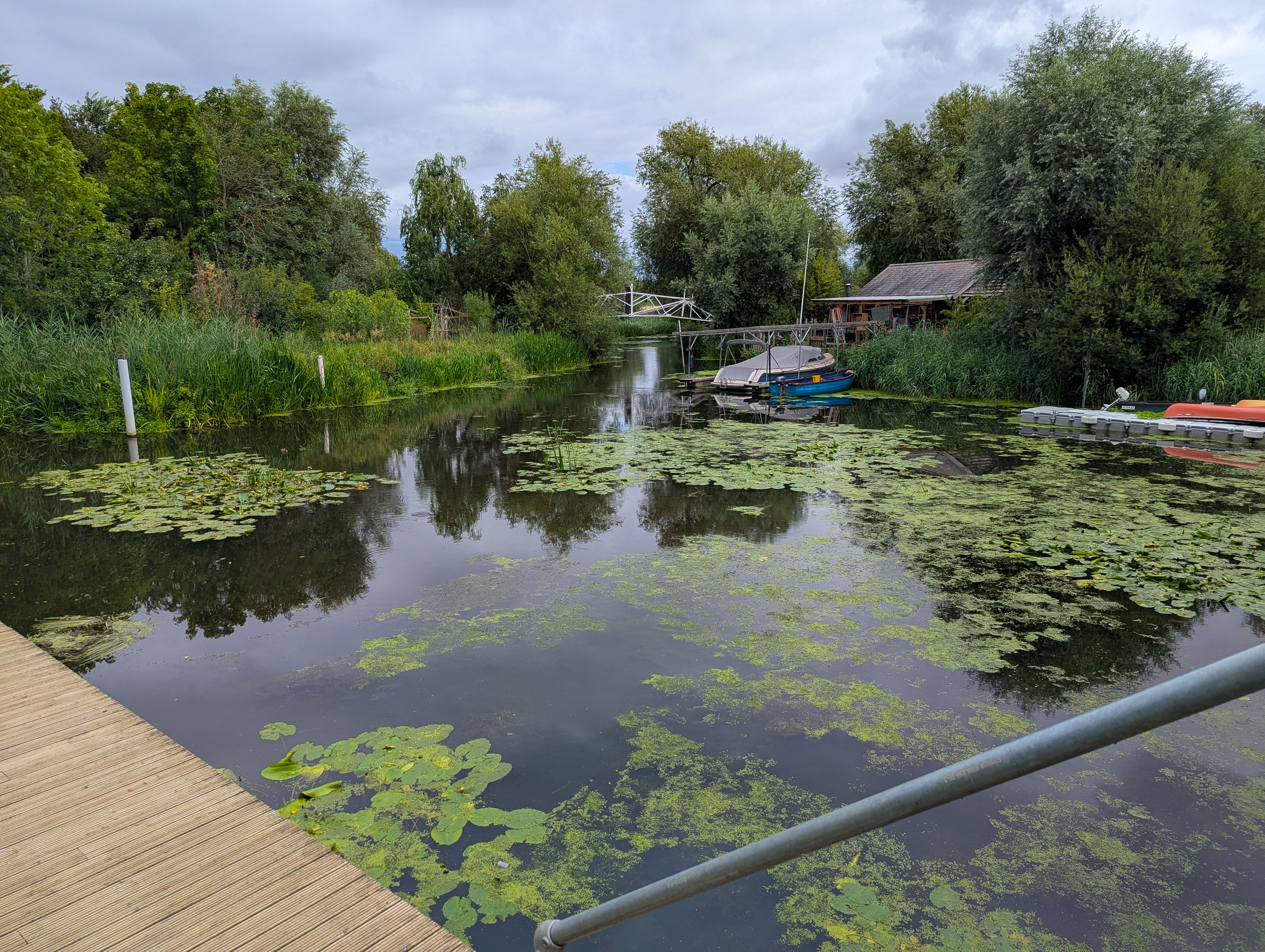 We decided on a short trip to Norfolk, taking the van and staying at a couple of campsites along the way. We set off on Thursday and stopped overnight at the St Neots Camping and Caravanning Club Site. Before arriving, we paid a visit to Paxton Pits Nature Reserve, an attractive area of lakes formed by aggregate extraction. There’s good parking, a pleasant café, clean loos, and even a book exchange (fatal with R in tow). We made use of the facilities and enjoyed a good coffee with cake. The main lake was alive with water birds, and several areas were marked as dragonfly habitats — though I doubt they could make use of the café or the reading material. Unfortunately, no dragonflies were to be seen; the weather was on the dreary side, with low mist and a general gloom that made photography a bit of a challenge.