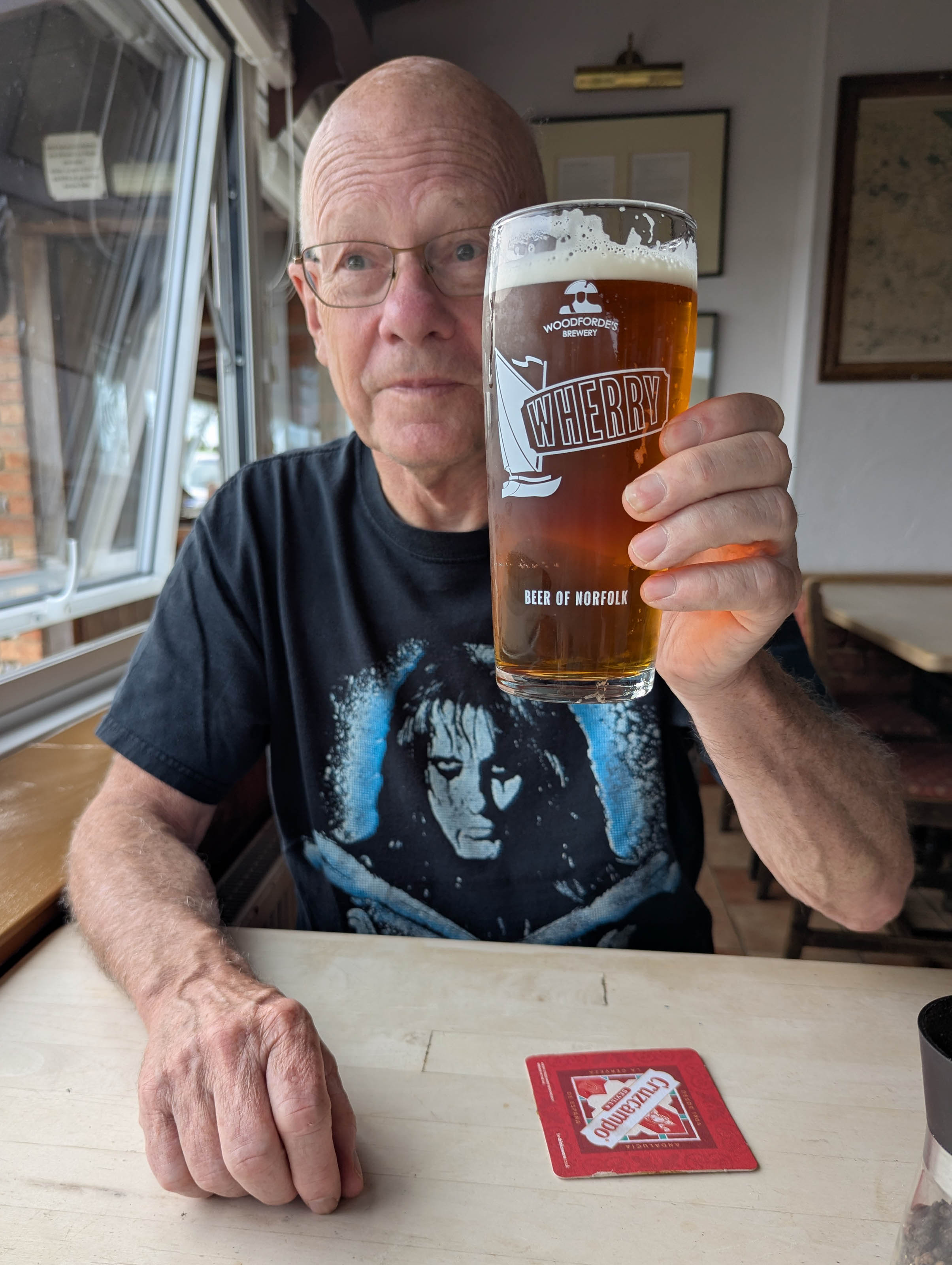 Back at the Reedham Ferry Inn we enjoyed a pint while watching the tide rise once again, wondering whether we would have to move our seats or not.