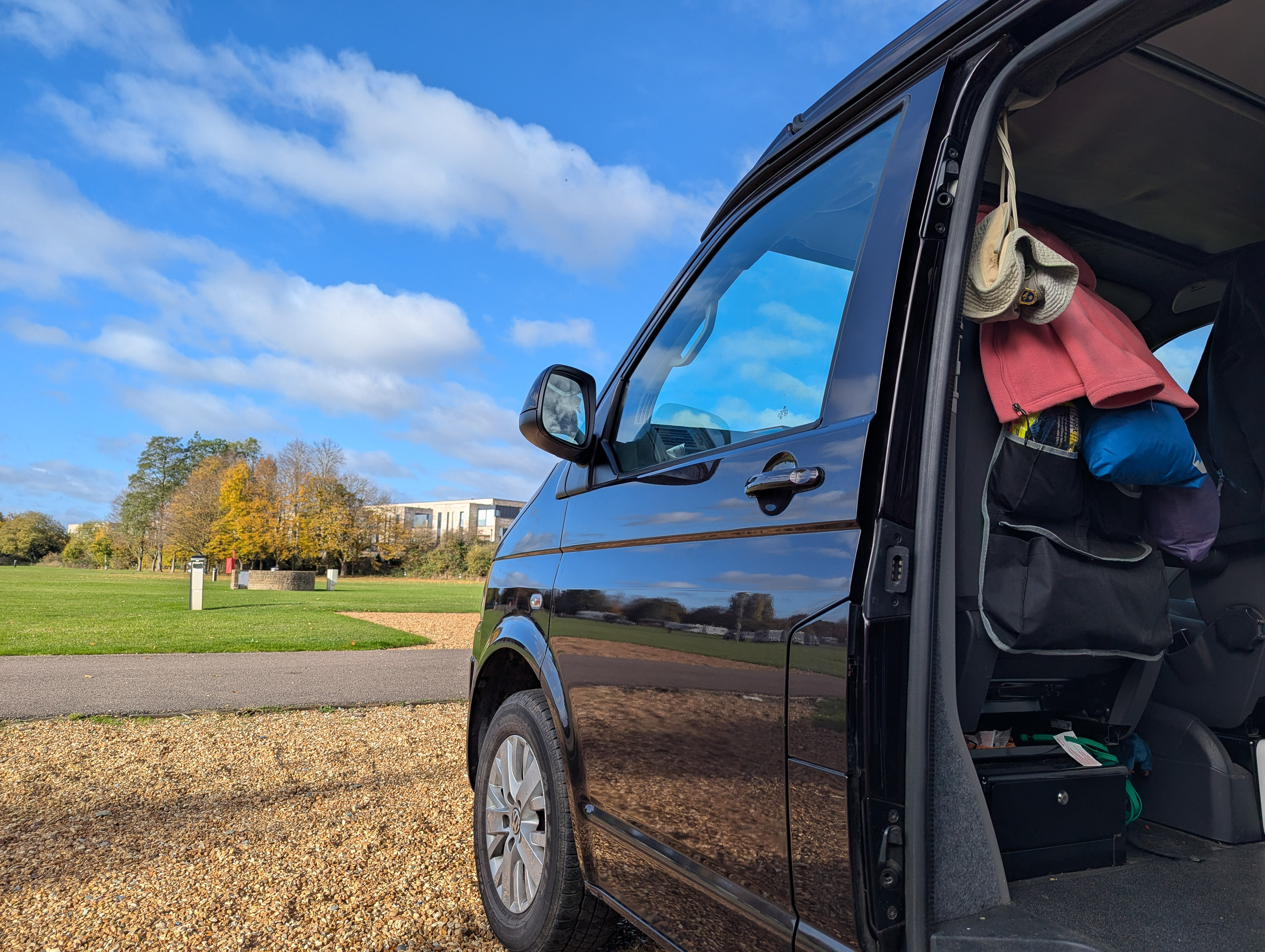 As the buses stop running around six on Sundays in Cambridge, we had to take a taxi back to the campsite. It turned out to be cheaper than expected, and we hardly had to wait. Our driver arrived in a ten-year-old Tesla, still running perfectly and, he proudly told us, never once serviced. He’d driven 130,000 miles and spent only £1,000 on fuel.