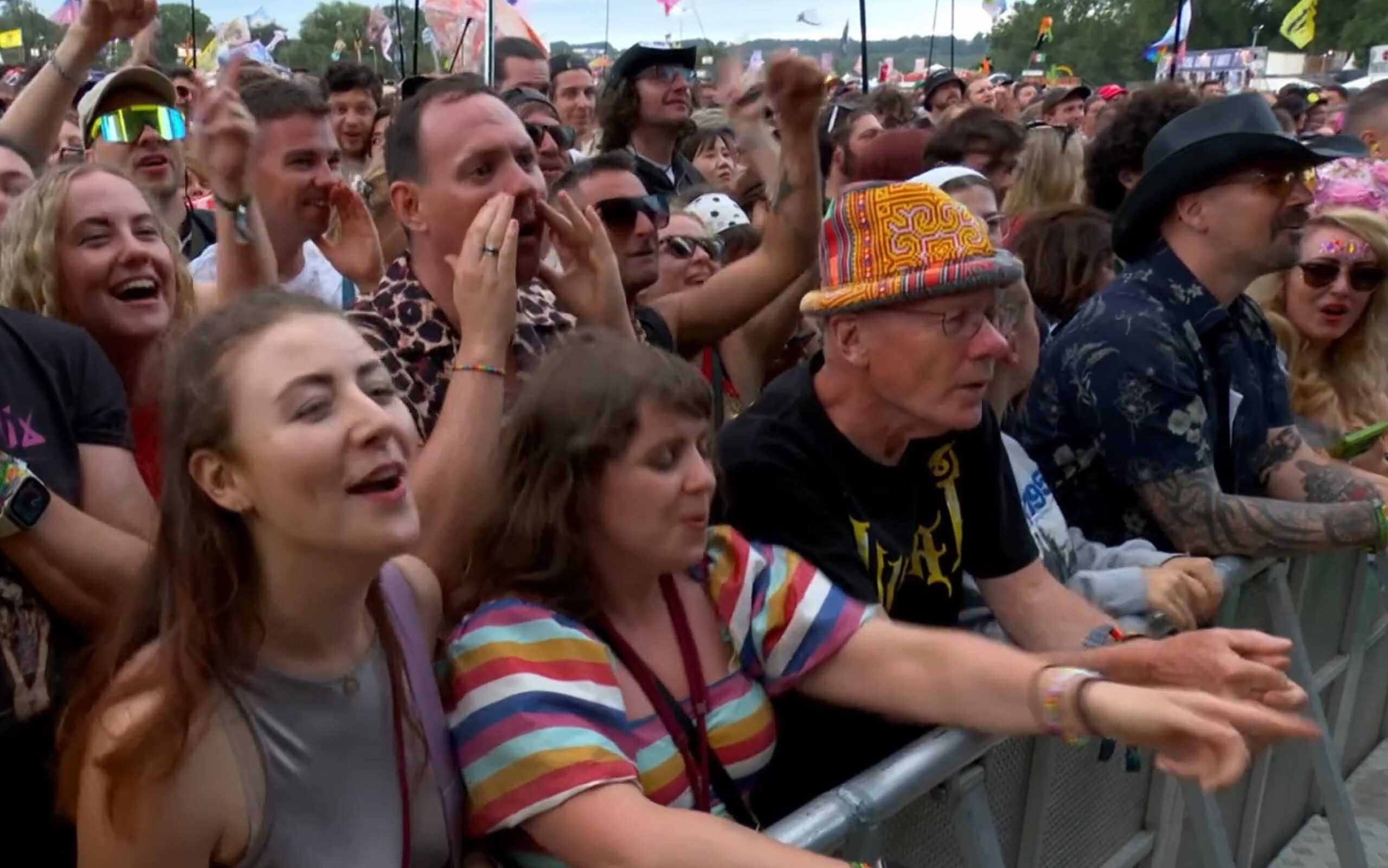 As a few people left after the Alanis Morissette performance, I pushed to the rail, but there was a disappointed woman, she really wanted to be on the front, but for The 1975. I wasn’t interested in the 1975, so I agreed to make sure she was on the rail for their performance. This worked fine, and when Biffy Clyro’s set was finished, I made sure she got to the front. Biffy Clyro were excellent, delivering a blistering, energetic set that cemented their reputation as a premier live act. Their performance, full of intense guitar riffs and soaring anthems, was a definite festival highlight. The cameras did spot me, though they were looking for more glamorous subjects.